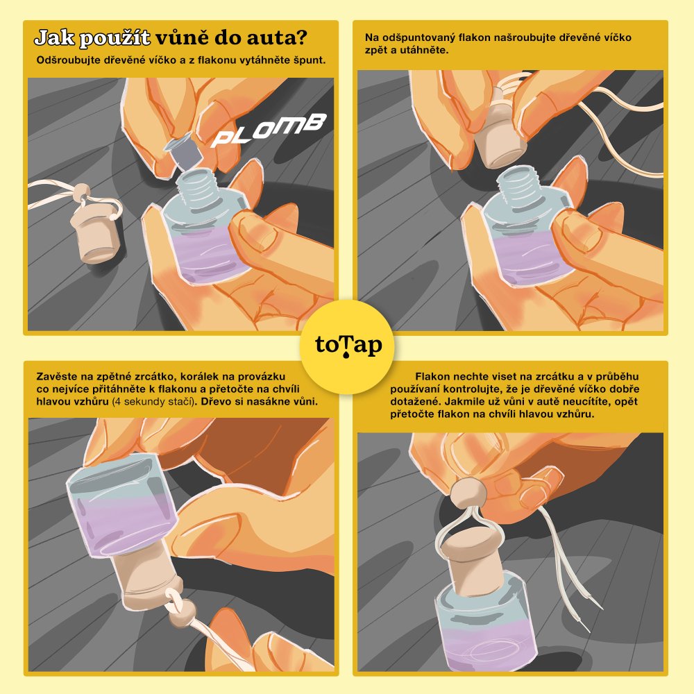 - Klips - pokud chcete flakon připevnit na ventilaci